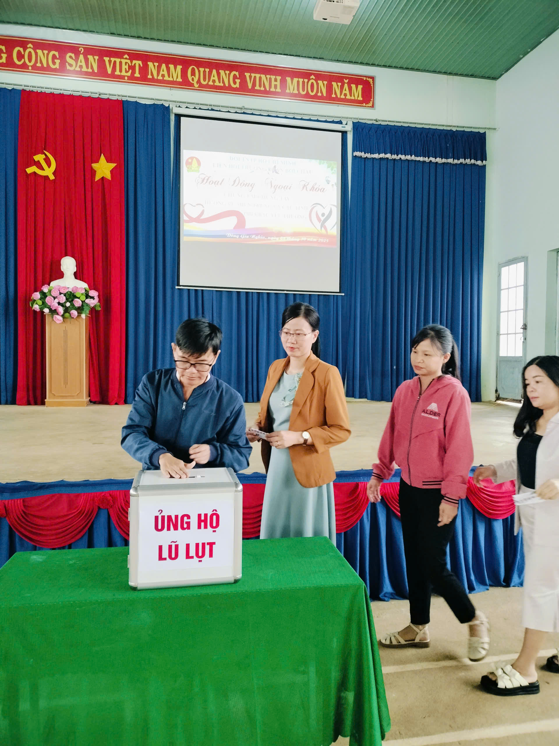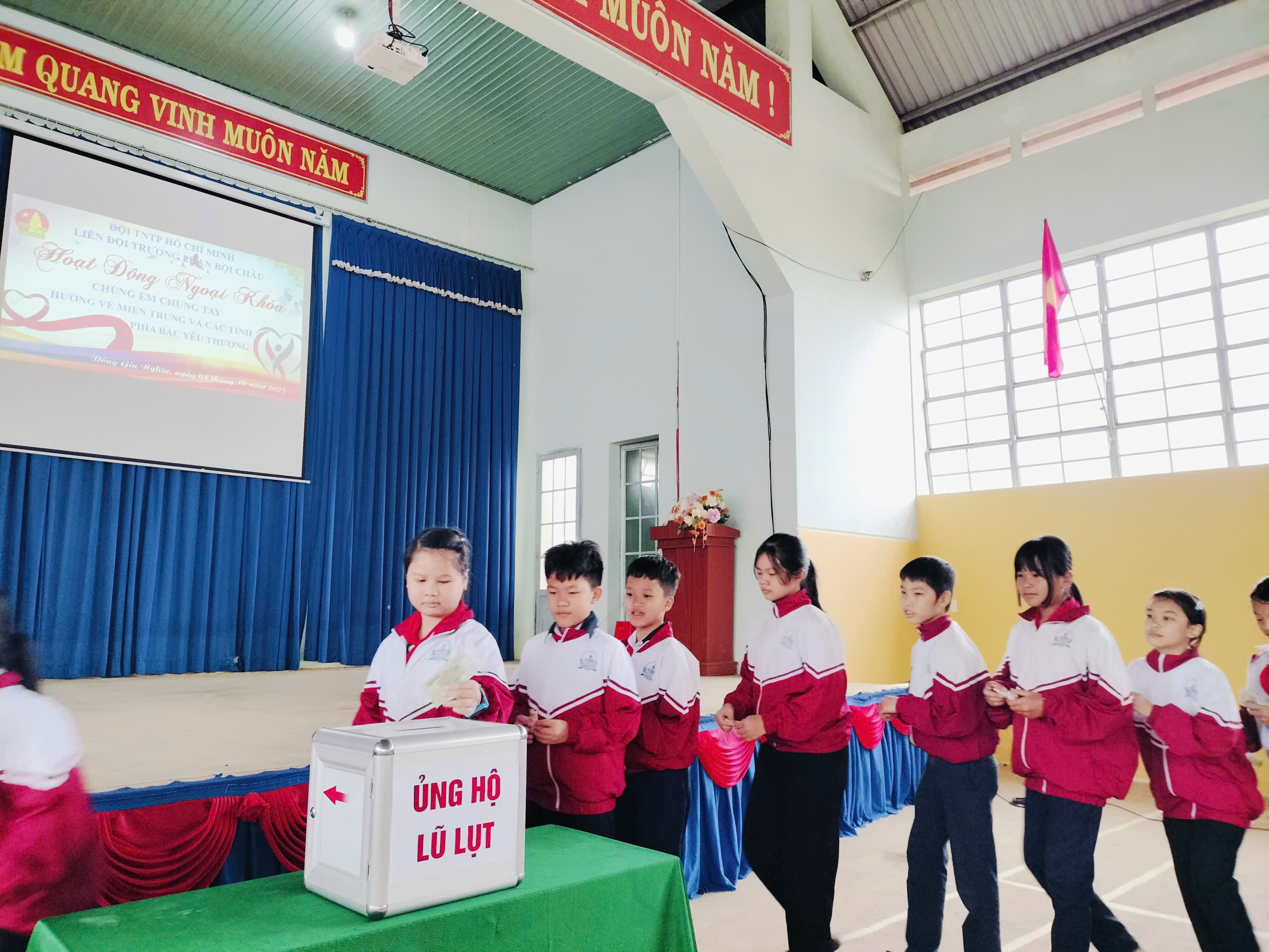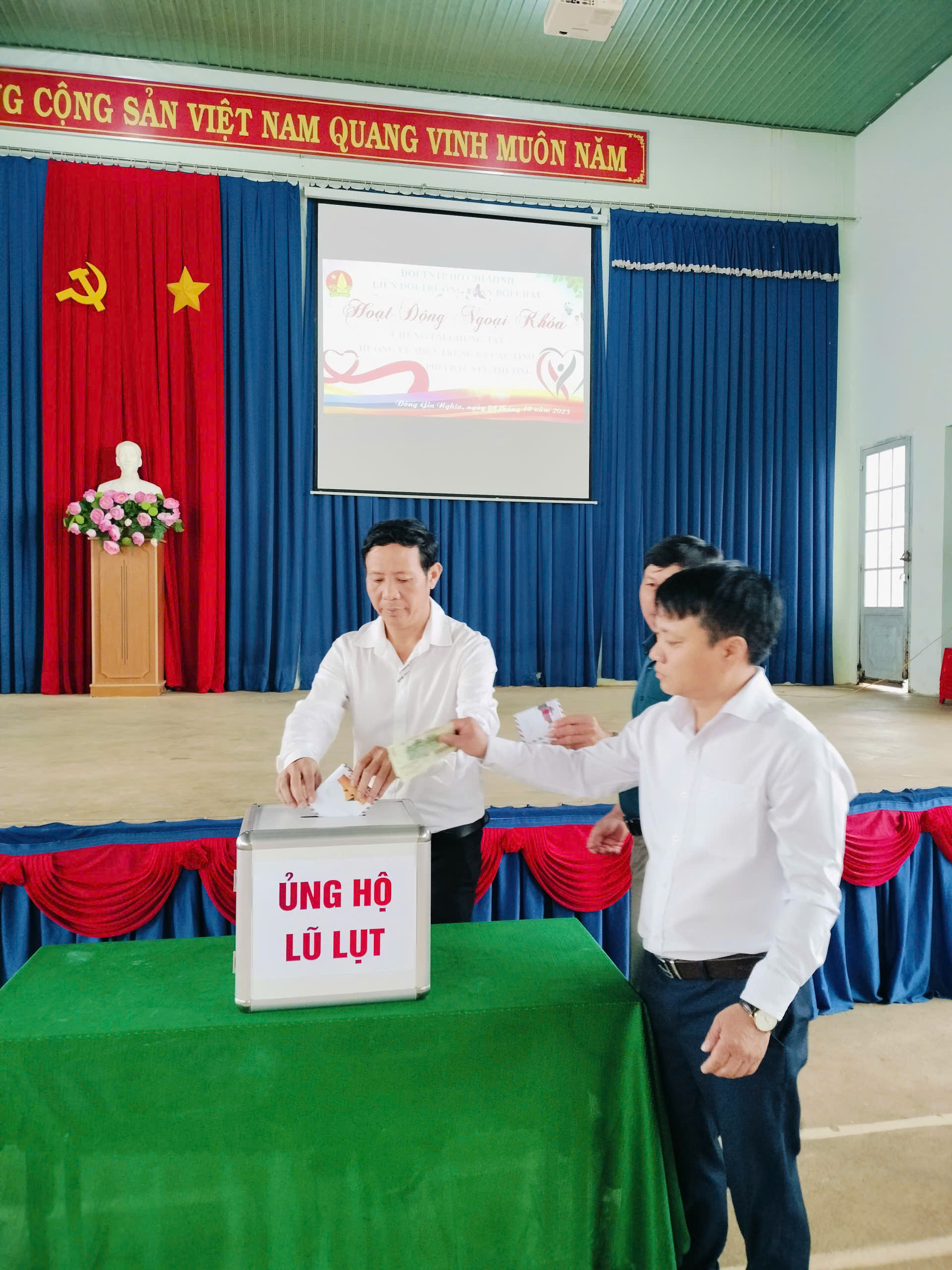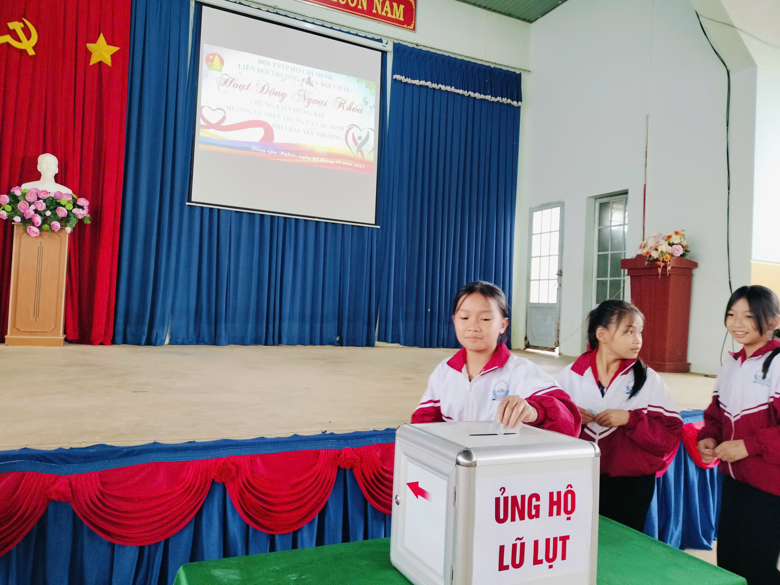 Sáng nay, thứ 4 ngày 08/10/2025 Cán bộ, Giáo viên, nhân viên và các em học sinh trường THCS Phan Bội Châu đã ủng hộ đồng bào bị lũ lụt, thiên tai hơn 10 triệu đồng