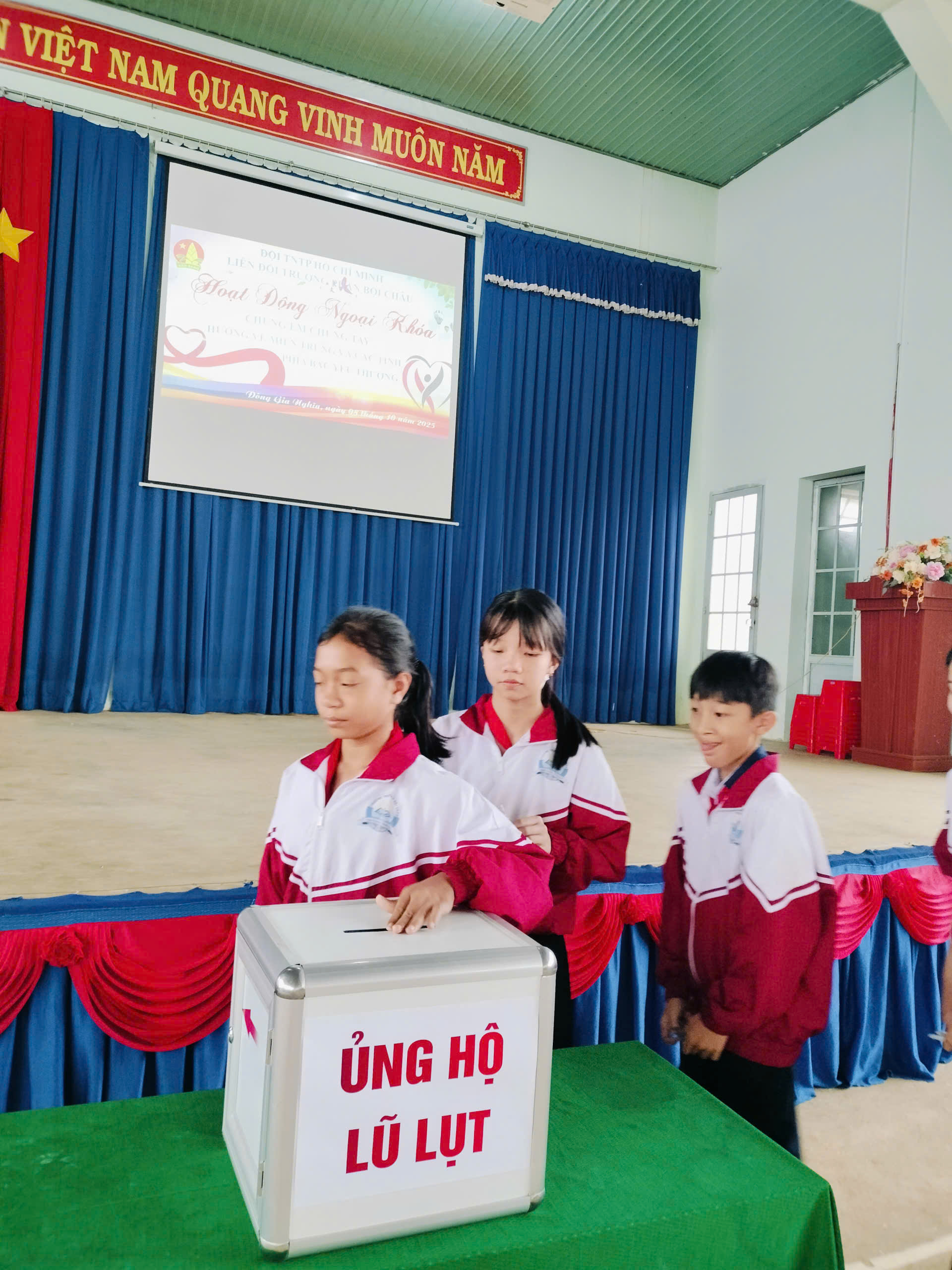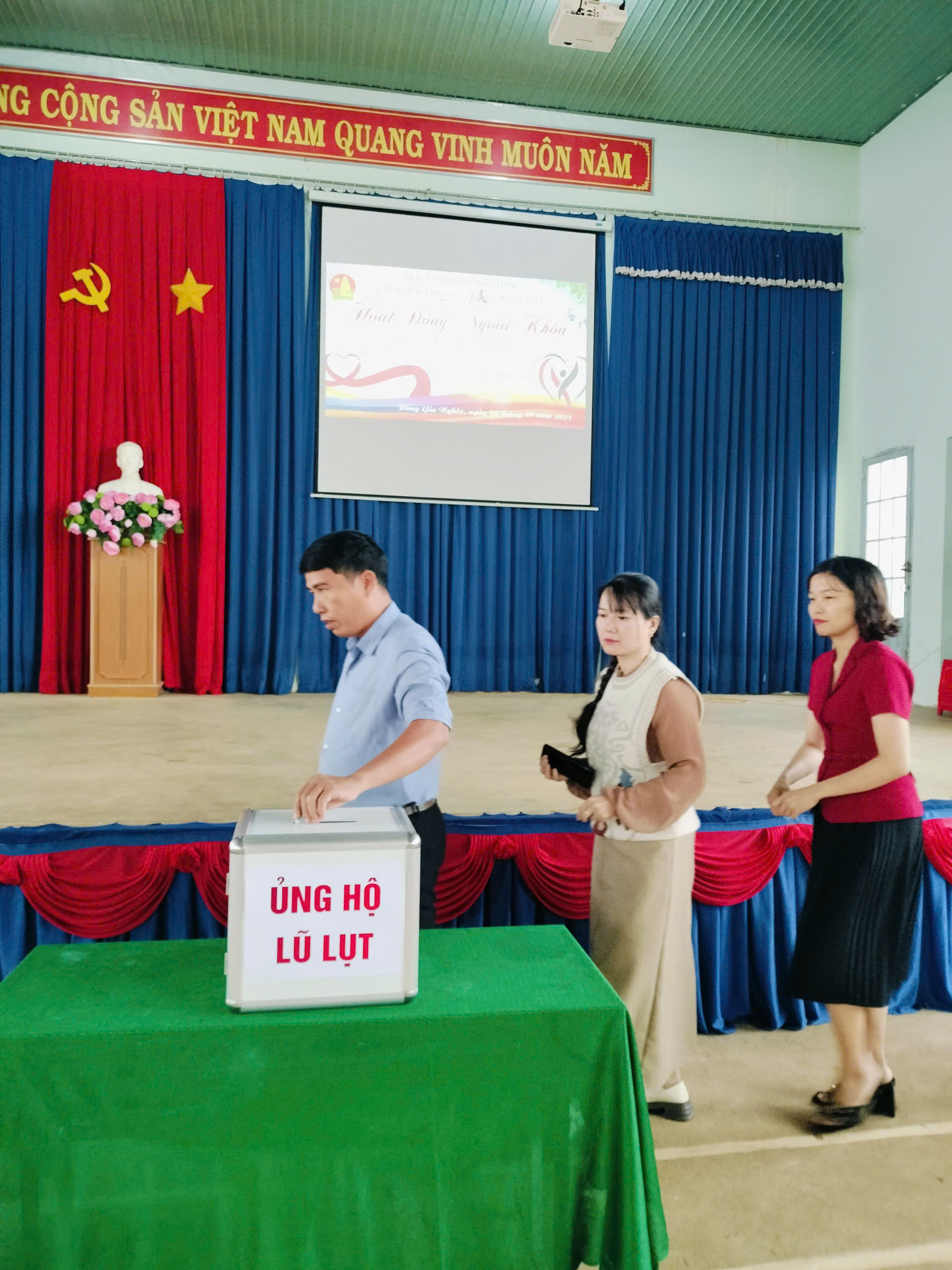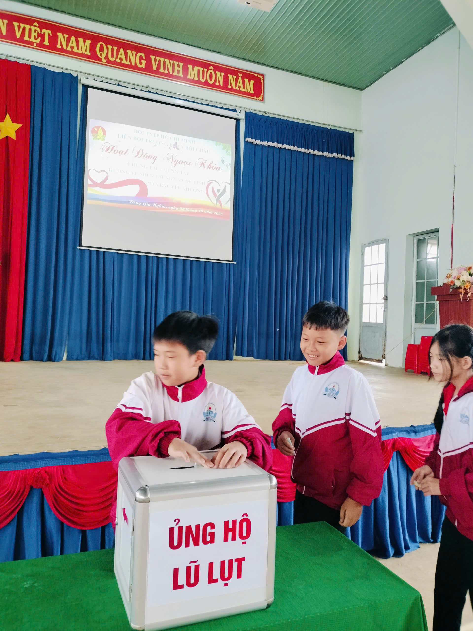 Sáng nay, thứ 4 ngày 08/10/2025 Cán bộ, Giáo viên, nhân viên và các em học sinh trường THCS Phan Bội Châu đã ủng hộ đồng bào bị lũ lụt, thiên tai hơn 10 triệu đồng