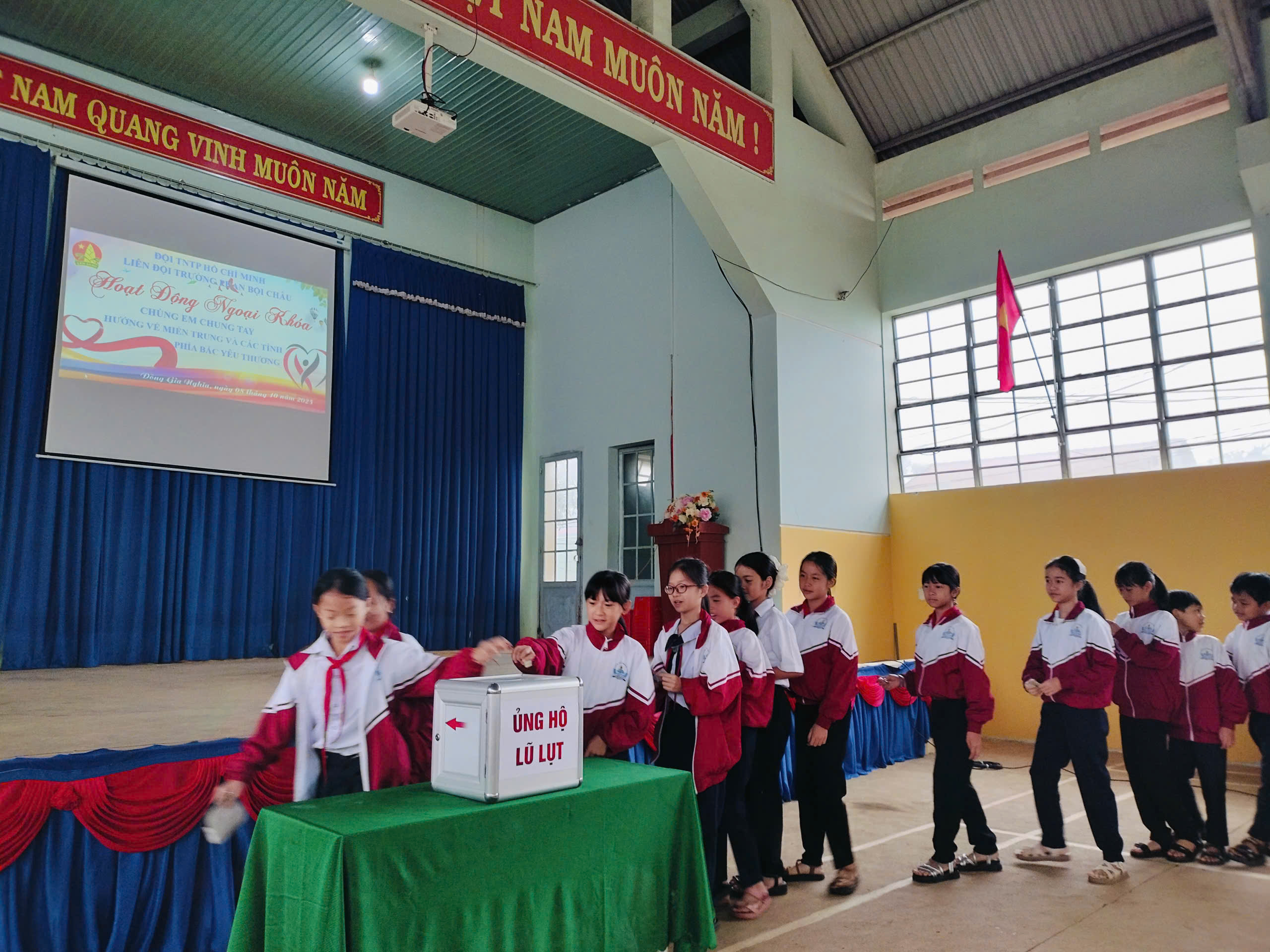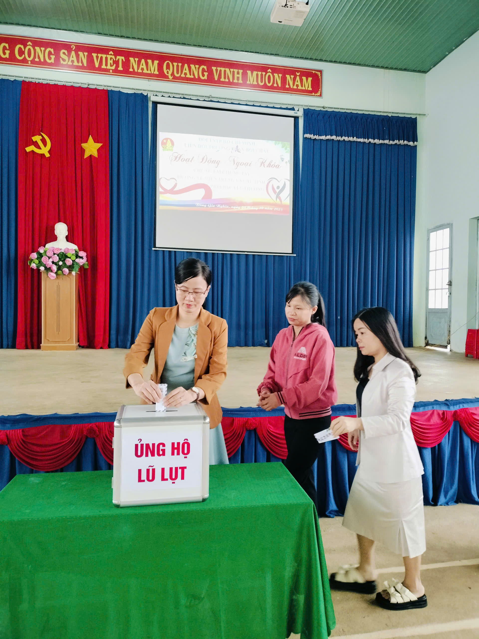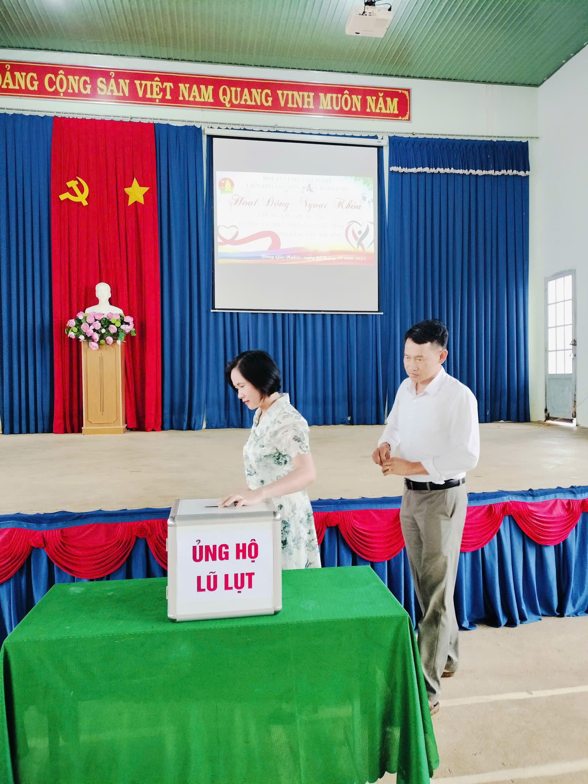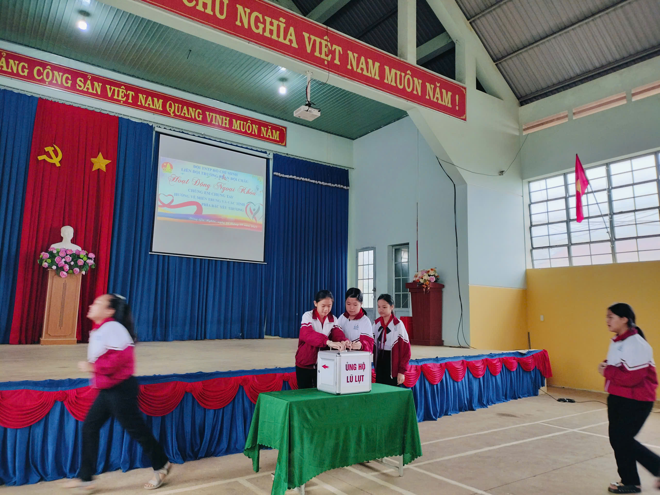 Sáng nay, thứ 4 ngày 08/10/2025 Cán bộ, Giáo viên, nhân viên và các em học sinh trường THCS Phan Bội Châu đã ủng hộ đồng bào bị lũ lụt, thiên tai hơn 10 triệu đồng