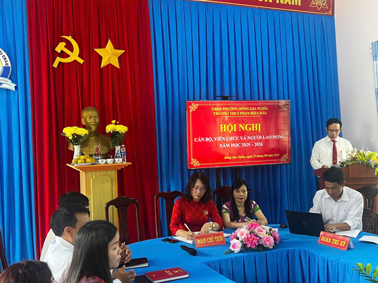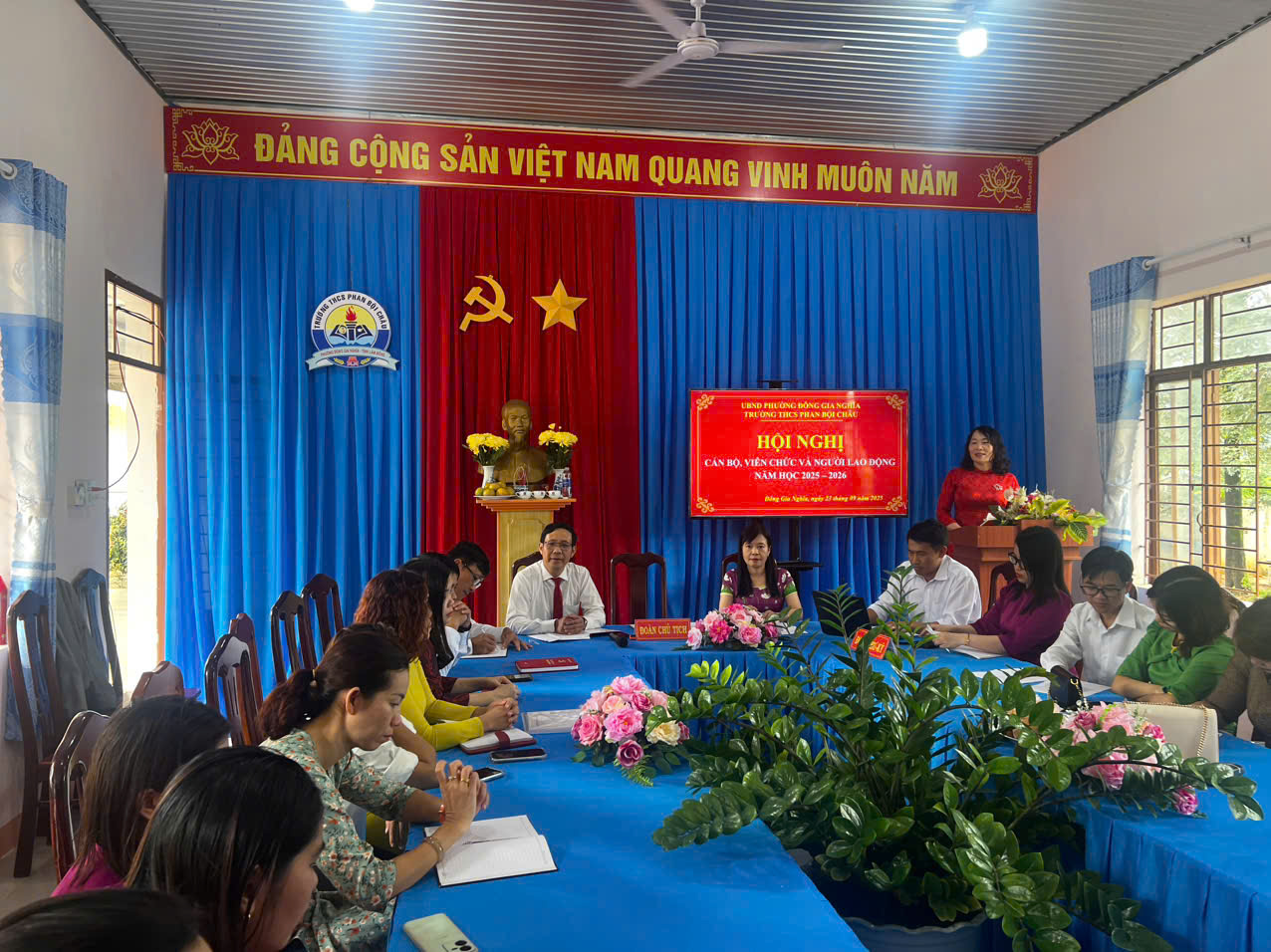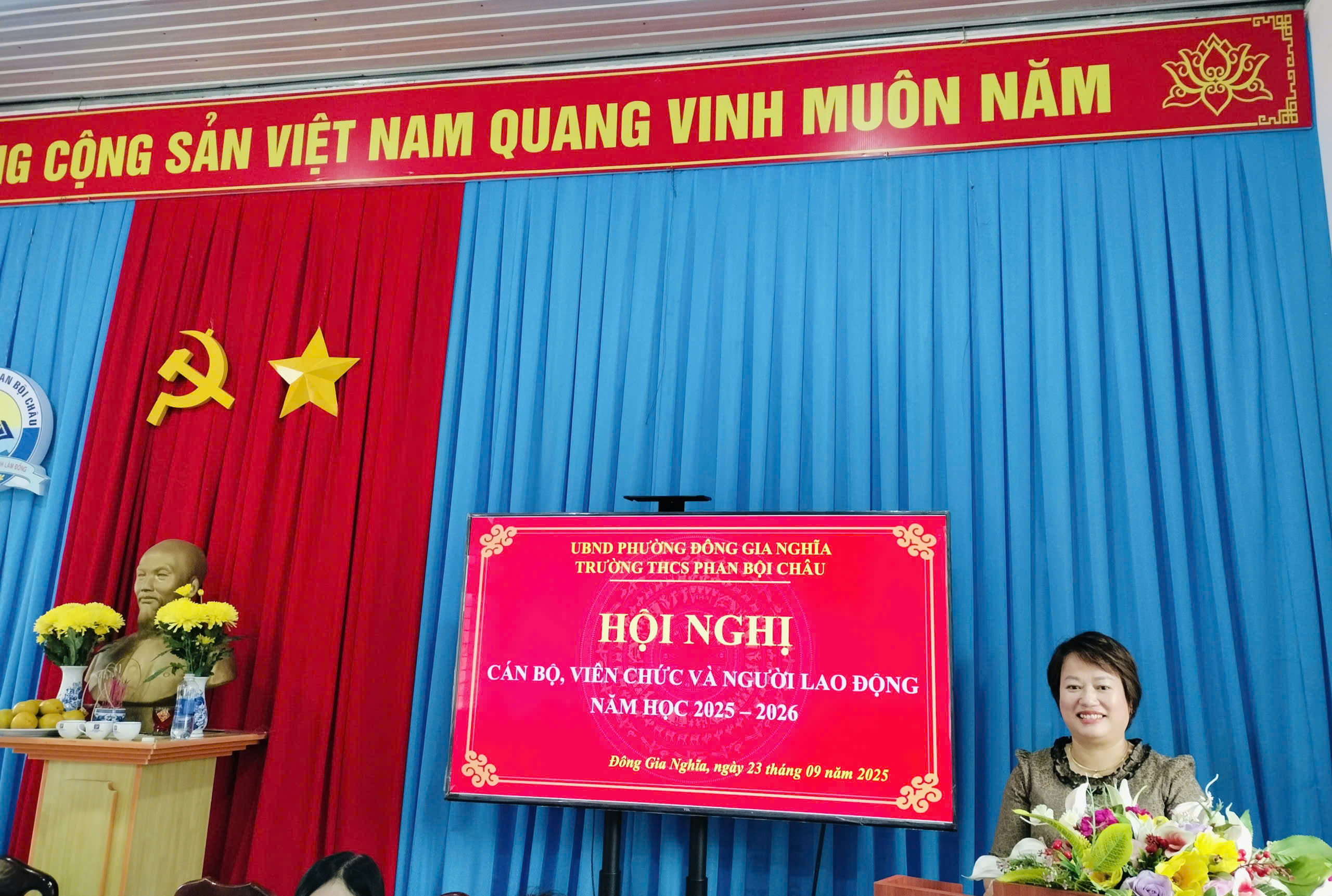 Với khí thế khẩn trương, nghiêm túc và dân chủ. Hội nghị Cán bộ, viên chức và người lao động năm học 2025-2026 đã thành công tốt đẹp. Tập thể thầy trò đã sẵn sàng thực hiện chủ để “Kỷ cương, sáng tạo, đột phá và phát triển”